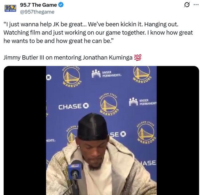 巴特勒赛后也谈到这一点,直言自己只是希望库明加变得更加出色,因为自己每天都和他一起相处、训练、打磨球技,清楚他有多渴望变得优秀,也知道他有多大的潜力。